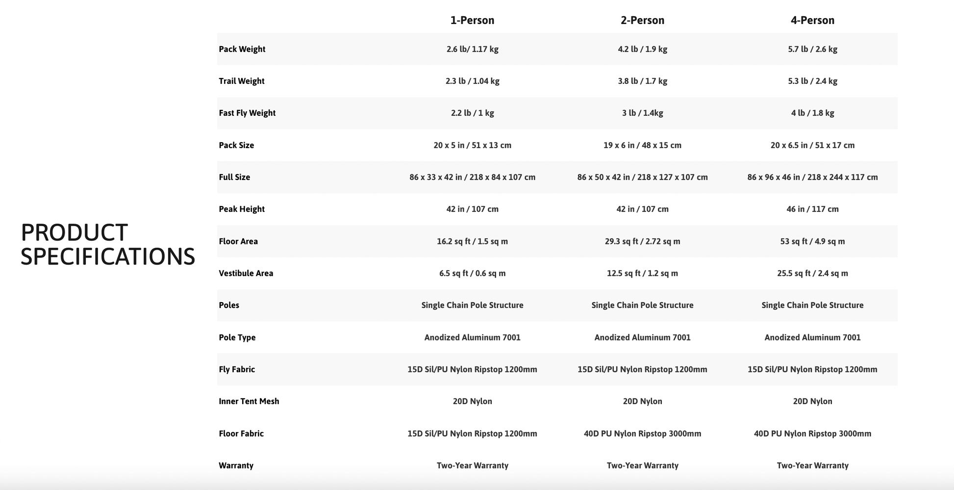 - Tapered tent design creates a spacious living area at an incredibly lightweight.